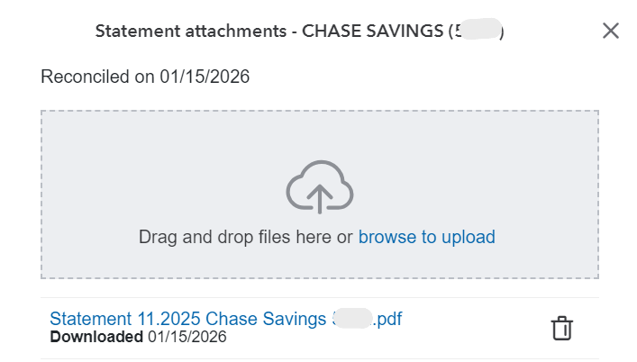 Did you know you can upload and attach your bank and credit card statements in QuickBooks Online? Even if your transactions are automatically imported to QBO, you should still reconcile your bank and credit card accounts using the statements because mistakes happens and reconciling will help ensure nothing is missed or double counted.